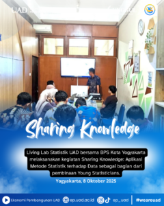 Living Lab Statistik UAD bersama BPS Kota Yogyakarta melaksanakan kegiatan Sharing Knowledge: Aplikasi Metode Statistik terhadap Data sebagai bagian dari pembinaan Young Statisticians.