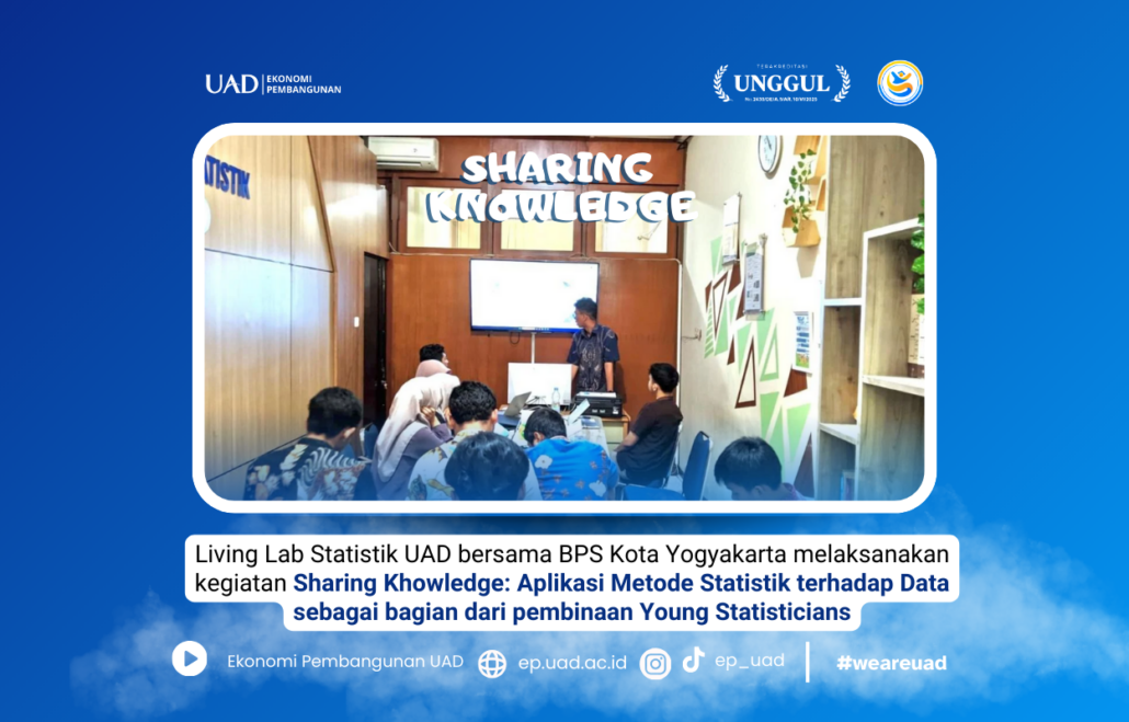 Living Lab Statistik UAD bersama BPS Kota Yogyakarta melaksanakan kegiatan Sharing Knowledge: Aplikasi Metode Statistik terhadap Data sebagai bagian dari pembinaan Young Statisticians.